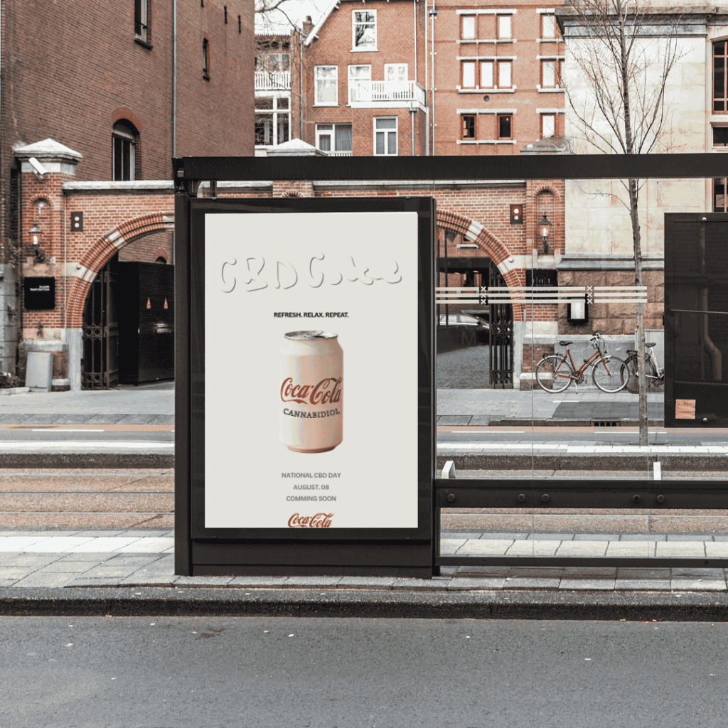 The tagline “Refresh. Relax. Repeat.” reflects the core benefits of CBD Coca-Cola — refreshing and revitalizing, while also promoting relaxation. This concise and rhythmic tagline is designed to be memorable and reinforces the beverage’s dual promise of relaxation and refreshment. It speaks directly to the target audience’s need for a balanced lifestyle that includes moments of calm amidst their busy, demanding lives. The tagline aligns with the wellness movement, appealing to the audience’s desire for natural products that help manage stress and mental well-being. By using clear, easy-to-understand messaging, the campaign invites consumers to integrate CBD Coca-Cola into their daily routines for relaxation and focus, without sacrificing taste or refreshment.
